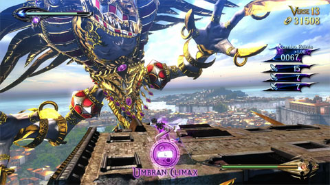 ヴァリアンスの剣はのちに「ワンダ・ブルー」のヴァリアンチウムブレードになるとかならないとか。ベヨネッタでは空中戦ってわりとあるシチュエーションなんだけど、今作は背景に摩天楼や街が映ることも多いせいかスケールの違いがダイナミックに感じられていいと思う。